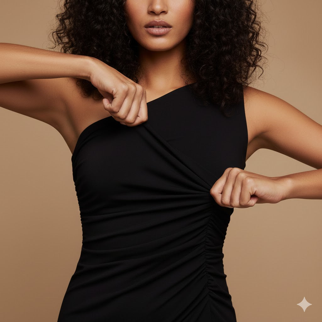 Absolutely! A strapless or one-shoulder bra works perfectly. Many customers also choose to go braless thanks to the supportive, contouring fit of the dress.
